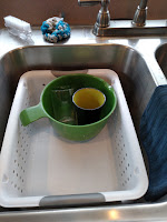 As family members use a cup or bowl, they put that dirty item in the tote and when the tote is full, it is lifted out and set on the countertop so the sink can be filled with water and the dishes washed. Why not just put them in the dishwasher? My dishwasher is broken.